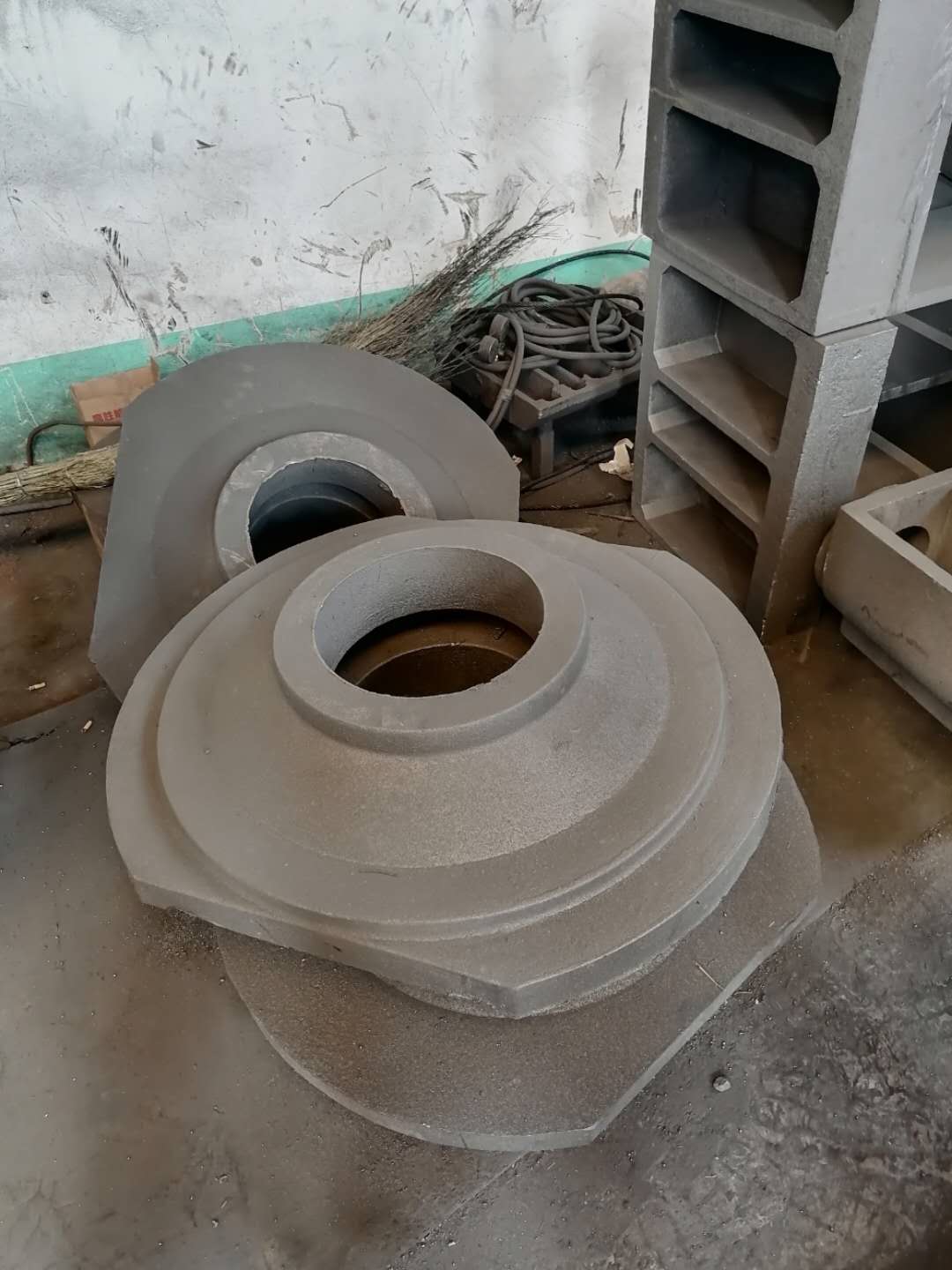 (2)滾筒清理:普通清理滾筒是使用較廣泛的清理設(shè)備。其工作原理是利用鑄件之間以及鑄件與附加角鐵之間的摩擦、碰撞來去除鑄件表面黏砂、毛刺和氧化鐵皮。其設(shè)備結(jié)構(gòu)簡單,易于制造,清理效果較好;缺點(diǎn)是生產(chǎn)率低,噪聲大,適合于中小型鑄造車間。
